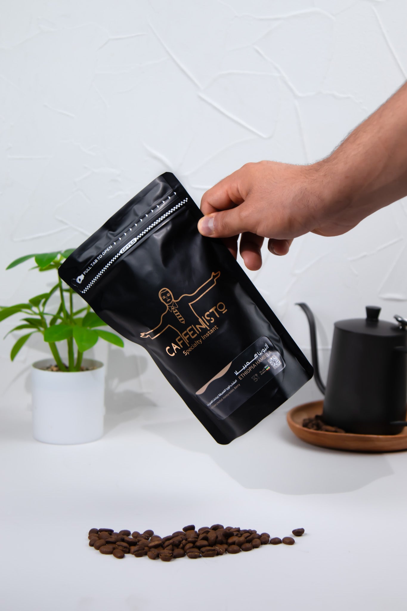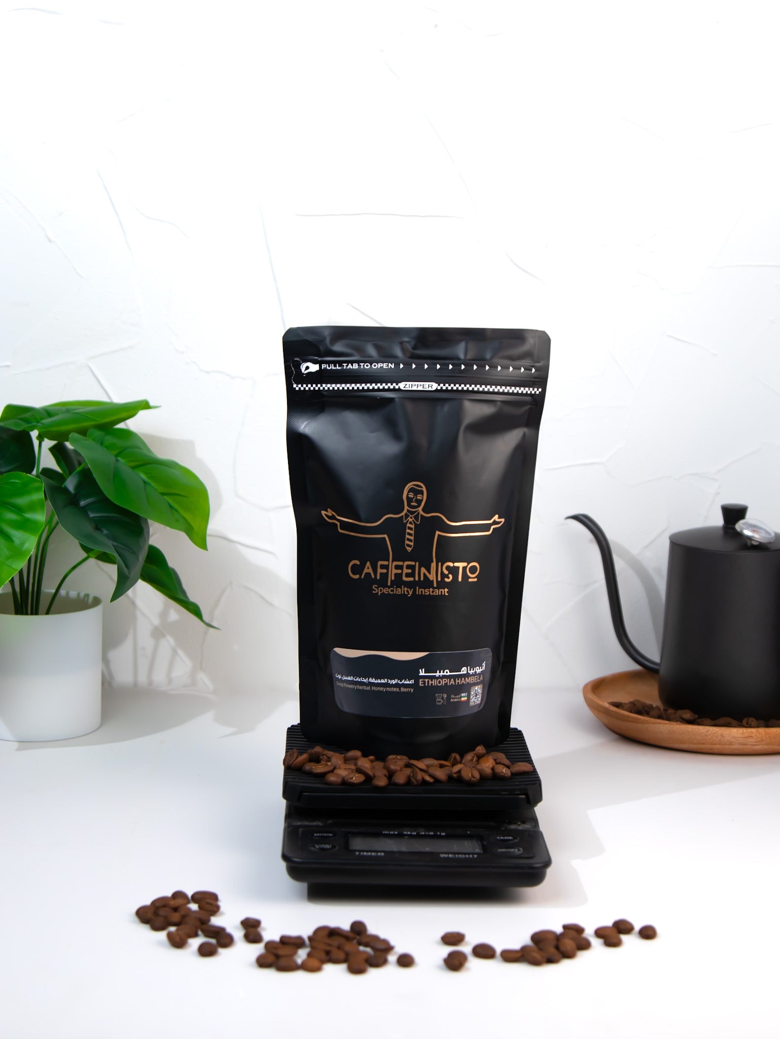 قهوة إثيوبيا همبيلا الفاخرة تتميز بلمسات زهرية وعشبية عميقة، تتكامل مع نكهات العسل والتوت، لتمنحك كوبًا سلسًا ومتوازنًا.